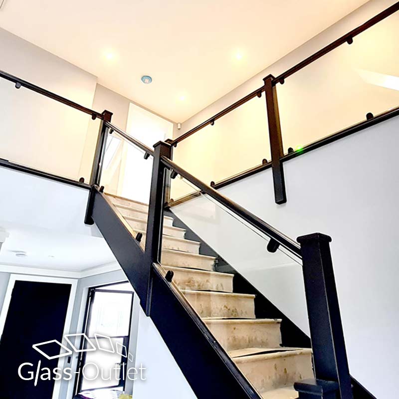 infill glass balustrade with clamps is the most affordable way to transform your staircase replacing the traditional wooden spindles for glass providing more light and stylish look. Using 10mm thick toughened glass as standard ensures a strong long lasting glass balustrade.